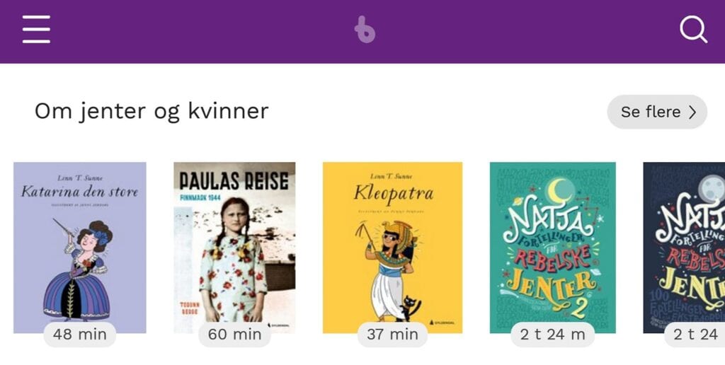 I anledning Kvinnedagen 8. mars har vi også laget en bokhylle for barn og ungdom i e- bokappen Bookbites.